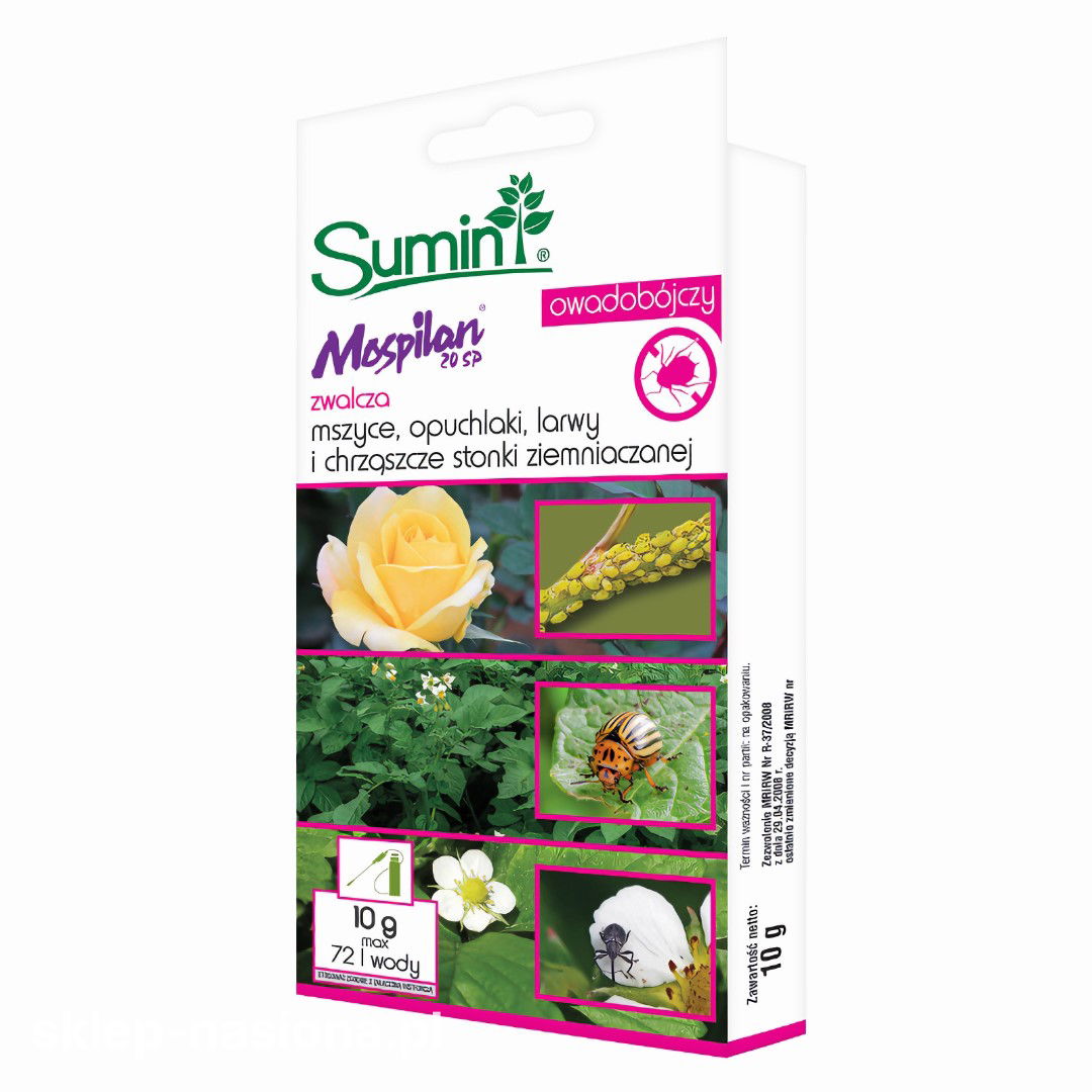 Opakowanie zawiera 10 g preparatu Mospilan 20 SP zwalczającego mszyce, larwy i chrząszcze stonki. Produkt firmy Sumin to niezawodny wybór dla każdego ogrodnika pragnącego skutecznie chronić swoje rośliny.
