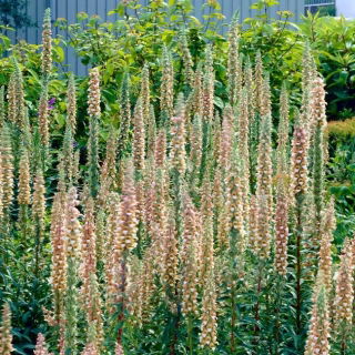 Kolor kwiatów: barwa naparstnicy rdzawej dostępnej w naszym sklepie jest kremowa. Wewnątrz kwitów znajdują się charakterystyczne plamki i żyłki. Po kwitnieniu pojawiają się owoce w kształcie torebki. Zwierają one wiele drobnych nasion, przez które roślina świetnie się rozmnaża. Samosiewy naparstnicy rewelacyjnie rekompensują jej krótkowieczność, która staje się prawie niezauważalna.