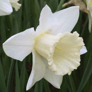 Szykowny narcyz trąbkowy Mount Hood to bez wątpienia jedna z najbardziej urokliwych odmian, dostępnych aktualnie w sprzedaży. Jego bardzo duże kwiaty są udekorowane okazałym, delikatnie karbowanym przykoronkiem, a ich stonowane barwy sprawiają, że roślina ta odnajdzie się w każdej kompozycji – zarówno jako jej główna ozdoba, jak i akcent harmonizujący całość.