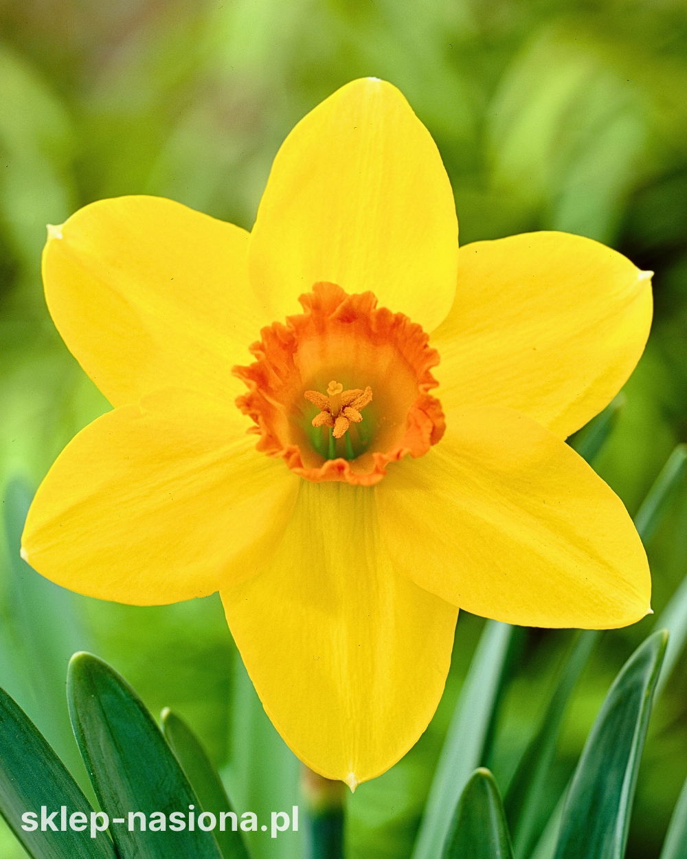 Rodzaj i kolor kwiatów: Kwiaty narcyza 'Pinza' są znane ze swojej intensywnej, złocistej barwy, której dodatkowy akcent stanowi wyrazista, pomarańczowa miseczka pośrodku. Te duże, jaskrawe kwiaty nie tylko przyciągają wzrok, ale także dodają ogrodowi żywego charakteru wczesną wiosną. Charakterystyczna pomarańczowa miseczka dodatkowo podkreśla głębię i bogactwo żółtego koloru płatków, tworząc efektowny kontrast i wizualną głębię kwiatu.