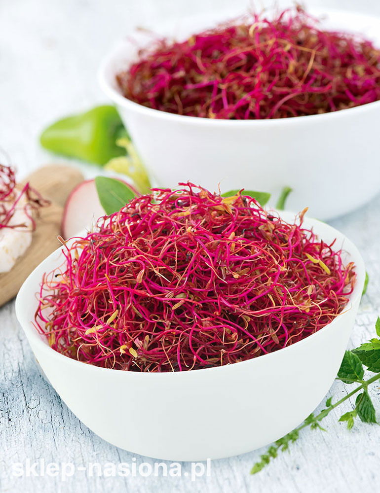 Kiełki buraka liściowego czerwonego doskonale sprawdzą się jako dekoracyjny i smakowy element w wielu potrawach. Mogą być dodawane do sałatek, kanapek, zup czy dań stir-fry, nadając im nie tylko wartości odżywczych, ale i atrakcyjny wygląd. Ich lekko słodki smak sprawia, że są one również świetnym dodatkiem do smoothie.