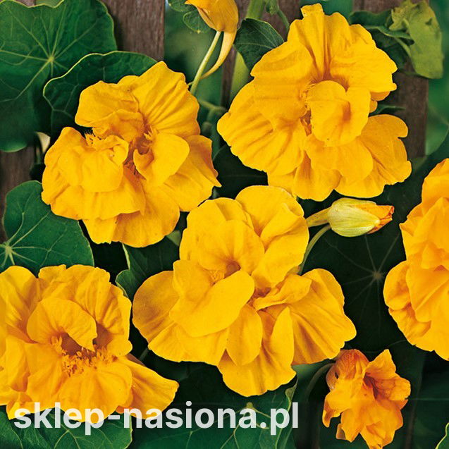 Nasturcja większa pełna 'Golden Gleam' osiąga wysokość do 150 cm, co czyni ją imponującym dodatkiem do każdego ogrodu.