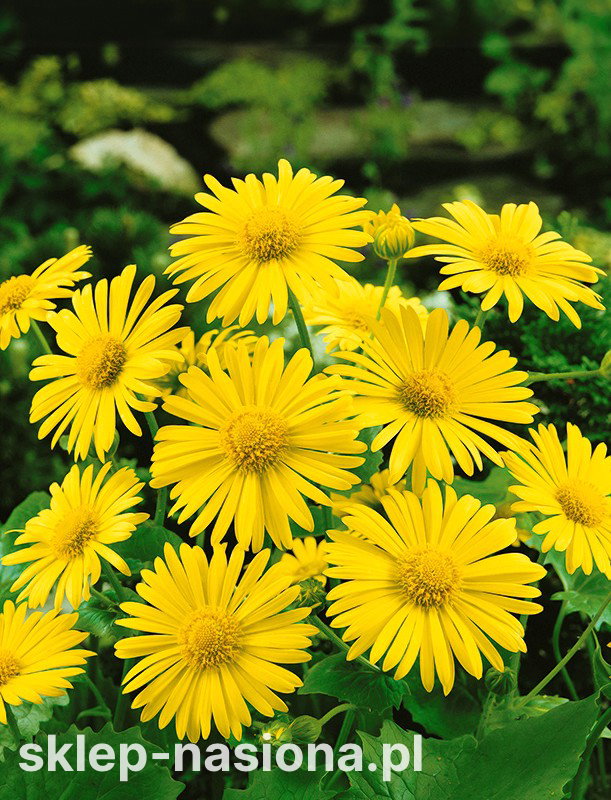 Rodzaj kwiatów: Szczytowe kwiatostany omiegu przyjmują formę koszyczków. Składają się z licznych wewnętrznych kwiatów rurkowatych, które tworzą duże, wyraźne „oczko”. Kwiaty zewnętrzne mają języczkowaty kształt, są ułożone po obwodzie. Kwiatostany mają około 6 centymetrów średnicy.