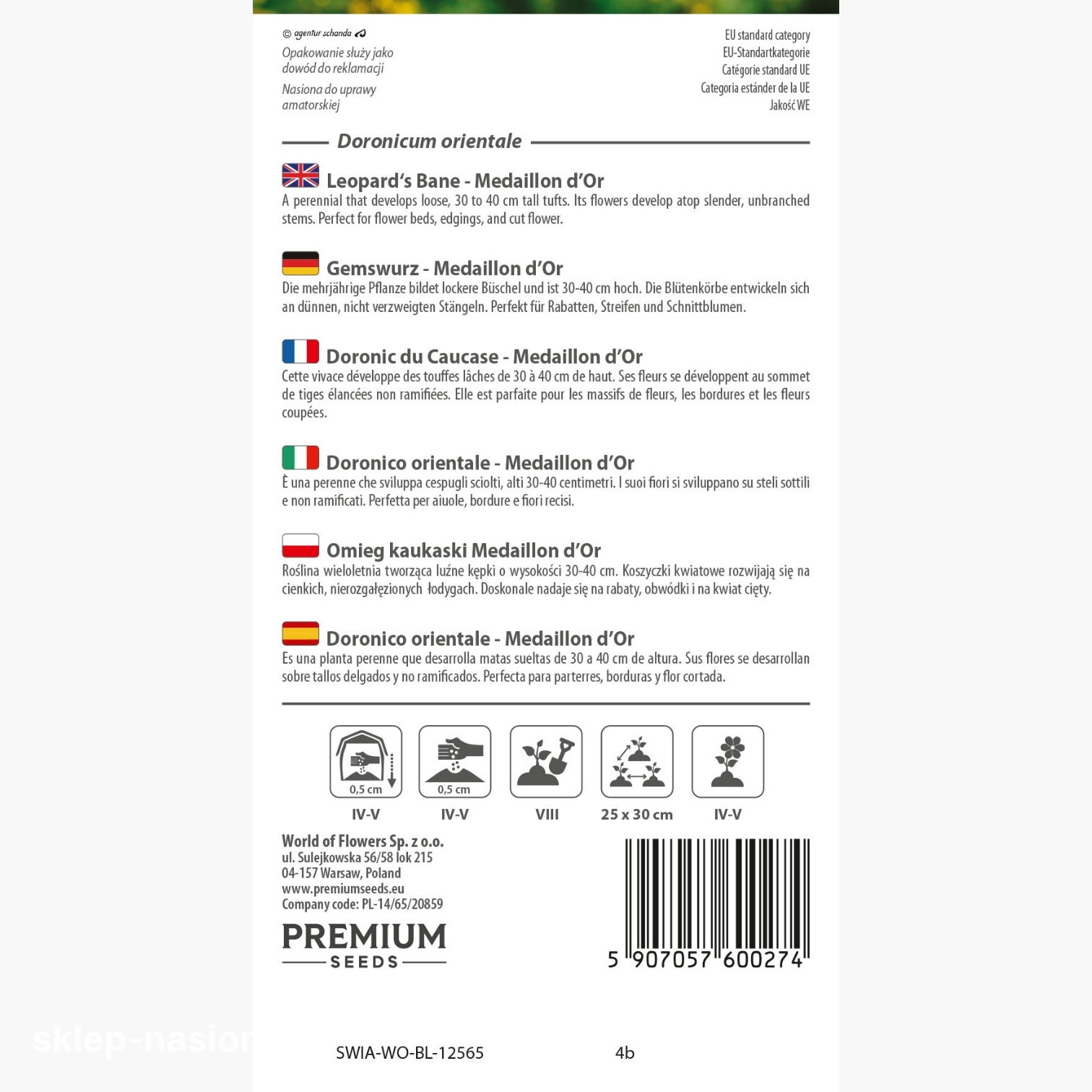 Opakowania dostępne w sprzedaży prowadzonej przez nasz sklep zawierają 0,1g nasion oraz informacje o terminie przydatności do siewu i ogólnych zasadach uprawy.