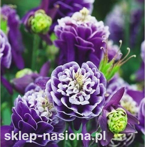 Rodzaj kwiatów: Odmiana Double Dark Blue & White ma pełne, duże kwiaty osadzone po parę na jednej łodyżce. Jej płatki są dwubarwne – niebieskofioletowe z białymi krawędziami. Posiadające niewielkie ostrogi kwiaty mają zaokrąglone płatki. Przez to nie przypominają tak bardzo gwiazdek, jak kwiatostany innych odmian orlików.