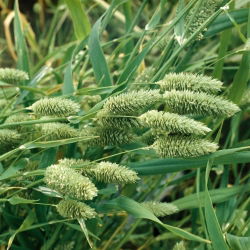 Kolor kwiatów: Początkowo kwiatostany odmiany Pony Tails są zielono-białawe, z biegiem czasu zaczynają wyraźnie płowieć.