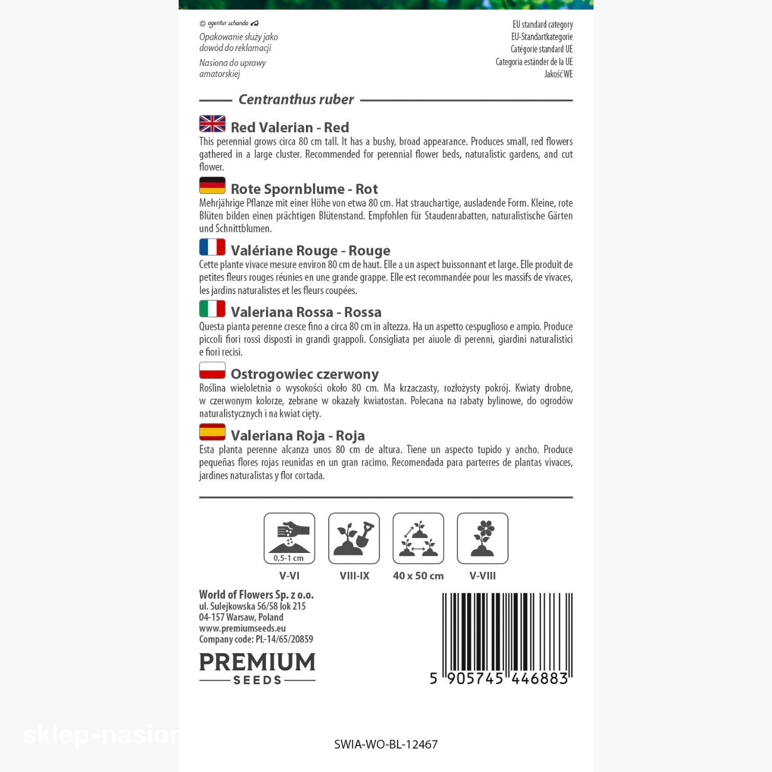 Opakowanie zawiera 0,3 grama nasion. Na odwrocie znajdują się informacje odnośnie zasad uprawy wraz z terminem przydatności nasion do siewu.