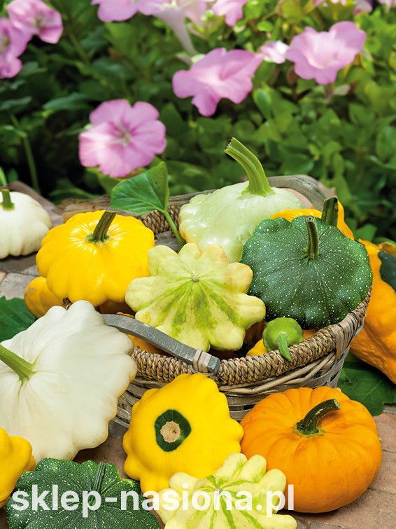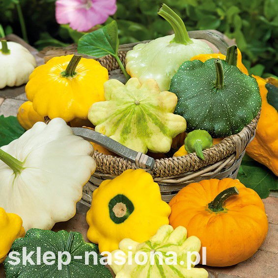 Patison - kolorowa mieszanka to jednoroczna roślina dyniowata, ceniona za oryginalny kształt owoców przypominających spłaszczony dysk z ozdobnie pofalowanymi krawędziami. Ta mieszanka odmian wyróżnia się różnorodnością barw - od śnieżnobiałych po głęboko żółte i zielone - co czyni ją atrakcyjnym wyborem zarówno dla ogrodników, jak i miłośników niebanalnych warzyw w kuchni. Kolorowe patisony doskonale sprawdzą się zarówno w ogródkach przydomowych, jak i na działkach użytkowych.
