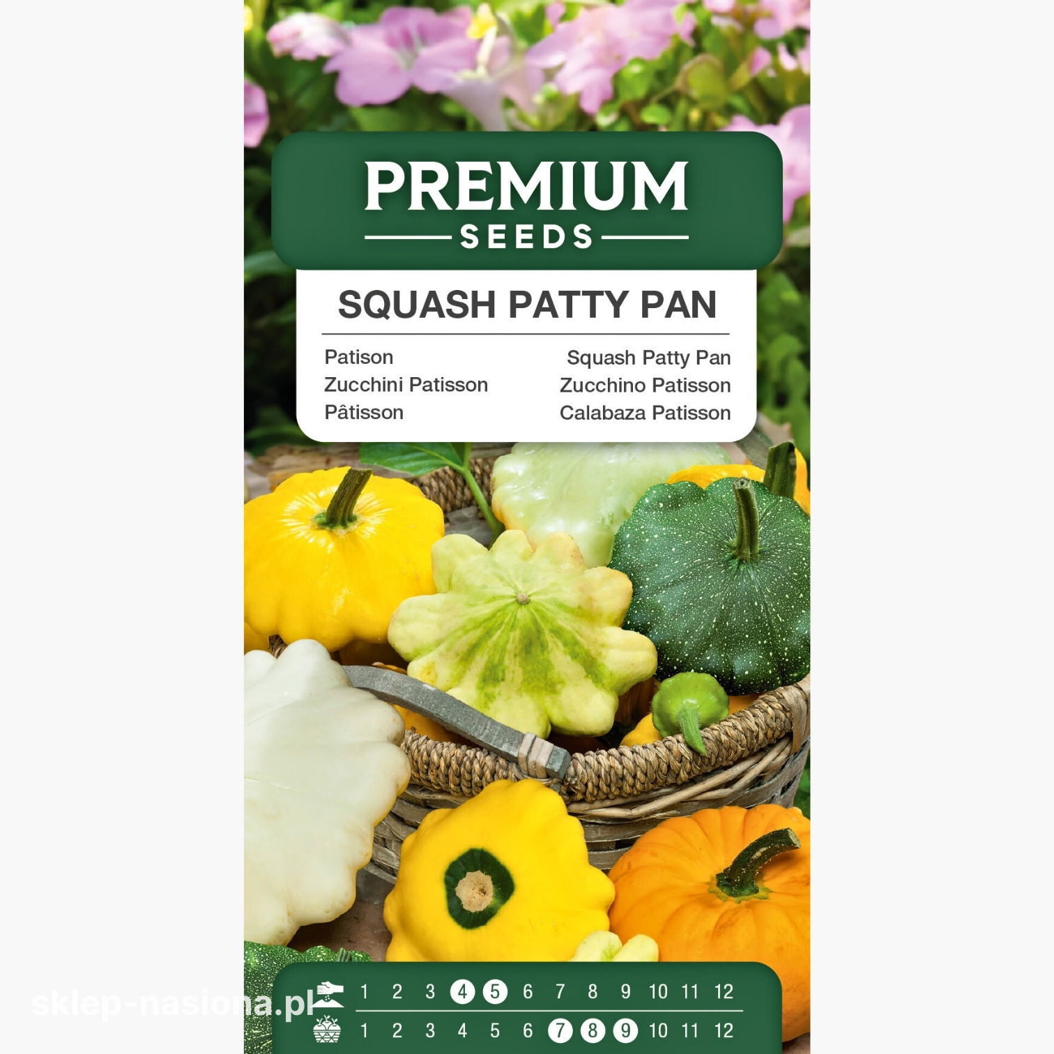 W opakowaniu znajduje się 2 g nasion kolorowej mieszanki patisona. Każde opakowanie zawiera informacje o terminie przydatności do siewu oraz praktyczne wskazówki dotyczące uprawy.