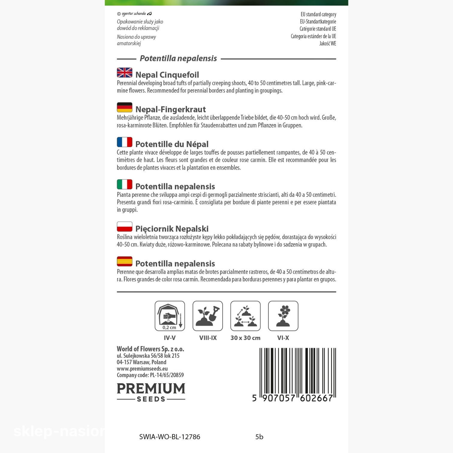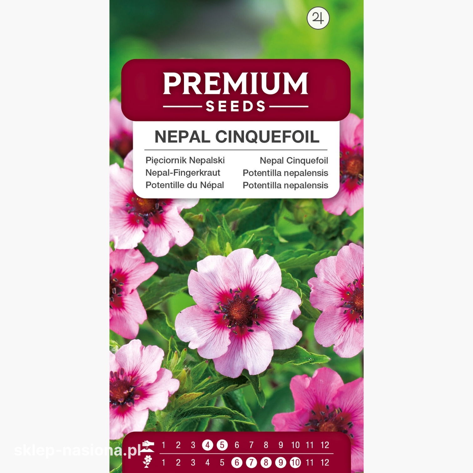 Nasz sklep oferuje sprzedaż nasion pięciornika nepalskiego w opakowaniach o gramaturze 0,2 g. Każda torebka zawiera wskazówki dotyczące uprawy roślin i informacje na temat okresu przydatności ich nasion do siewu.