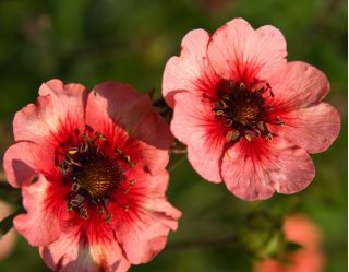 Kolor kwiatów: Pięciornik nepalski rozkwita na wyjątkowo piękny, różowy kolor. W centrum kwiatu widnieje intensywna, czerwonawa plama, efektownie kontrastująca z brązowopurpurowymi pręcikami. Im bliżej brzegów, tym kolor płatków jest jaśniejszy, a na całej ich powierzchni występują cieniutkie, ciemnoróżowe żyłki.