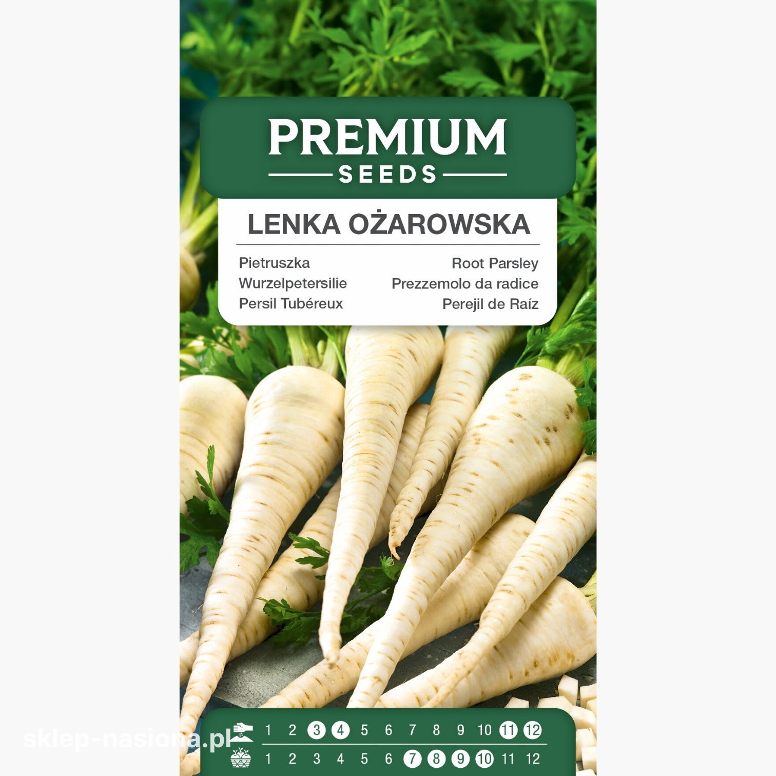 Opakowanie polecanej przez nasz sklep pietruszki Lenka Ożarowska zawiera 5 gram nasion. Każde opakowanie zawiera informację o zasadach uprawy oraz terminie przydatności do siewu.