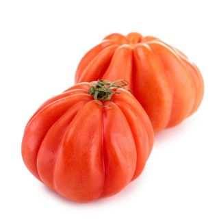 Owoce: Pomidor Corazon F1 wytwarza bardzo duże owoce, których masa dochodzi do 180-200 g. Przybierają one kształt gruszki i mają mocno żebrowaną powierzchnię.
