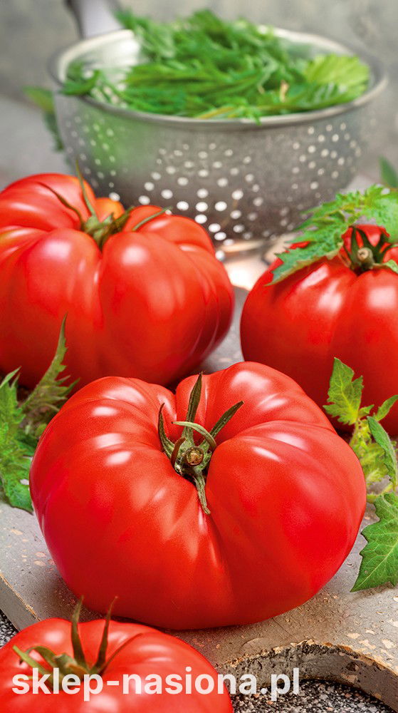 Pomidor Gigant zachwyca rozmiarem owoców w apetycznym czerwonym kolorze. Zaliczany jest do odmian średnio późnych. Rośliny wysokie, samokończące, przeważnie kończą wzrost za 6-9 gronem. Ze względu na taki typ wzrostu niezbędne jest ich palikowanie, zaleca się prowadzenie na 2-3 pędy. Odmiana bardzo łatwa w uprawie i odporna na wirusa mozaiki tytoniu oraz częściowo na brunatną plamistość liści.