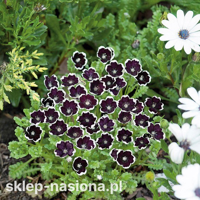 Nazwa łacińska: Nemophila menziesii var. discoidalis Penny Black