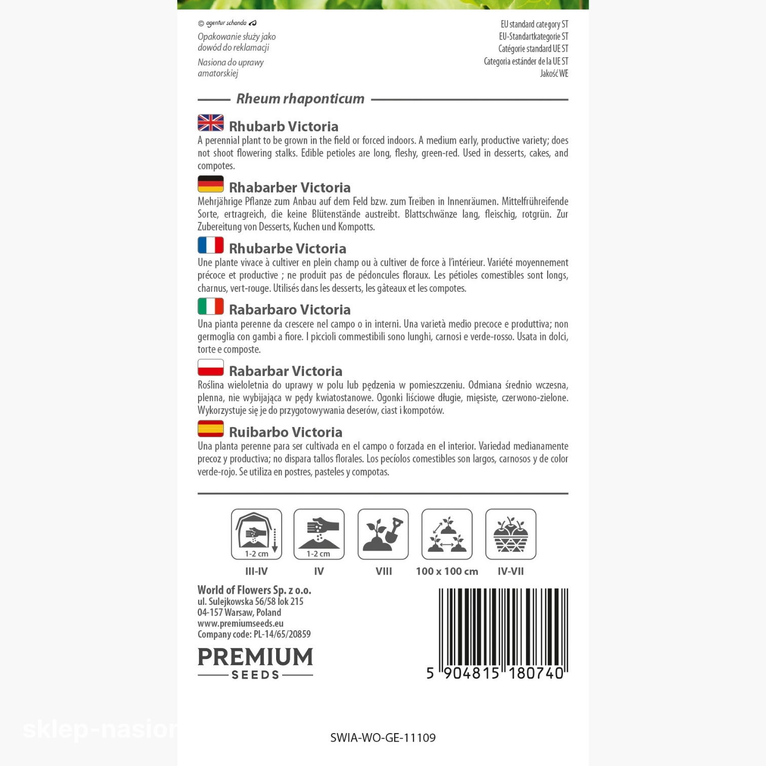 Rabarbar jest uprawiany jest jako warzywo, wykorzystuje się jadalne ogonki liściowe. Ceniony jest za ich orzeźwiający, kwaskowy smak, który zawdzięczają obecności kwasu jabłkowego, cytrynowego i octowego. Warzywo to zawiera śladowe ilości kwasu szczawiowego nie jest jednak groźne dla naszego zdrowia. Rabarbar Victoria to wyjątkowo plenna, średnio wczesna odmiana. Cechą niezwykle pożądaną jest jej odporność na wybijanie w pędy kwiatostanowe.