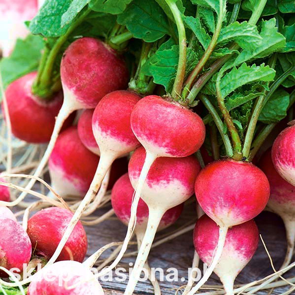 Rzodkiewka Ewka to nowa odmiana o apetycznych, czerwonych zgrubieniach z białym końcem. Nadaje się do uprawy w polu i pod osłonami. Smaczny, soczysty i lekko ostry smak to cechy prezentowanej odmiany. Wyrwana prosto z grządki będzie smakowitym i pożywnym dodatkiem do kanapek i sałatek. Dostępne w naszym sklepie nasiona, gwarantują ogrodniczy sukces i pełną satysfakcję z uprawy tych warzyw.