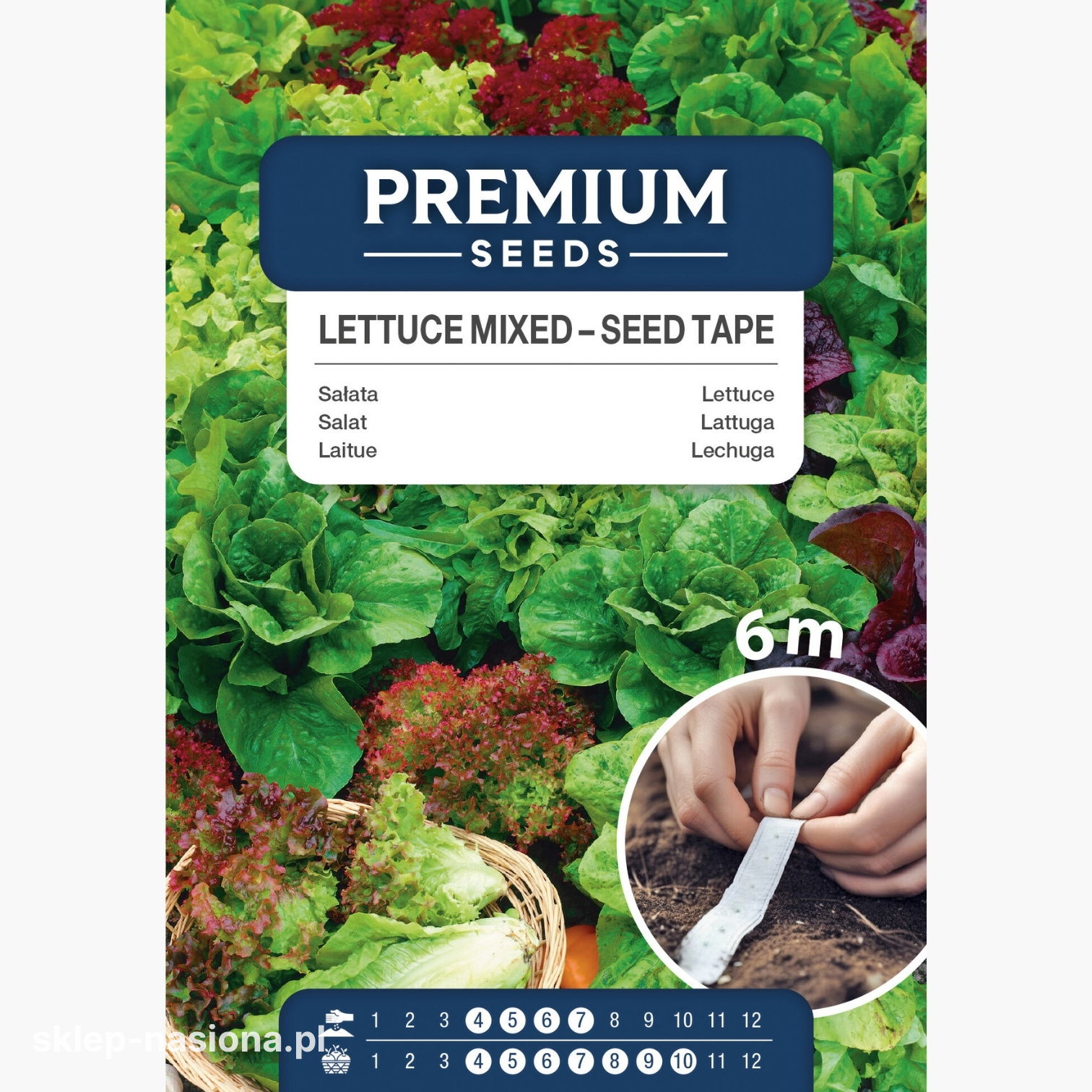 W paczce znajduje się 7 m taśmy i ok. 140 nasion. Na opakowaniu zamieszczono ponadto wszystkie niezbędne informacje na temat siewu i pielęgnacji sałaty oraz terminu przydatności nasion do uprawy.