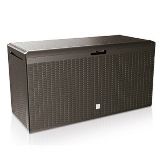 Skrzynia do ogrodu, na balkon lub taras Boxe Board stanowi doskonałe miejsce do przechowywania. Duża i pakowna skrzynia będzie odpowiednia do przechowywania drobnych przedmiotów, poduszek ogrodowych, zabawek dla dzieci czy narzędzi. Wystarczy kilka poduszek by zmienić ją w dodatkowe miejsce do siedzenia na świeżym powietrzu. Jest nie tylko pojemna, ale też bardzo dekoracyjna, gdyż jej ścianki zdobi faktura imitująca rattanową plecionkę, będzie wspaniałym dopełnieniem ogrodowych aranżacji.