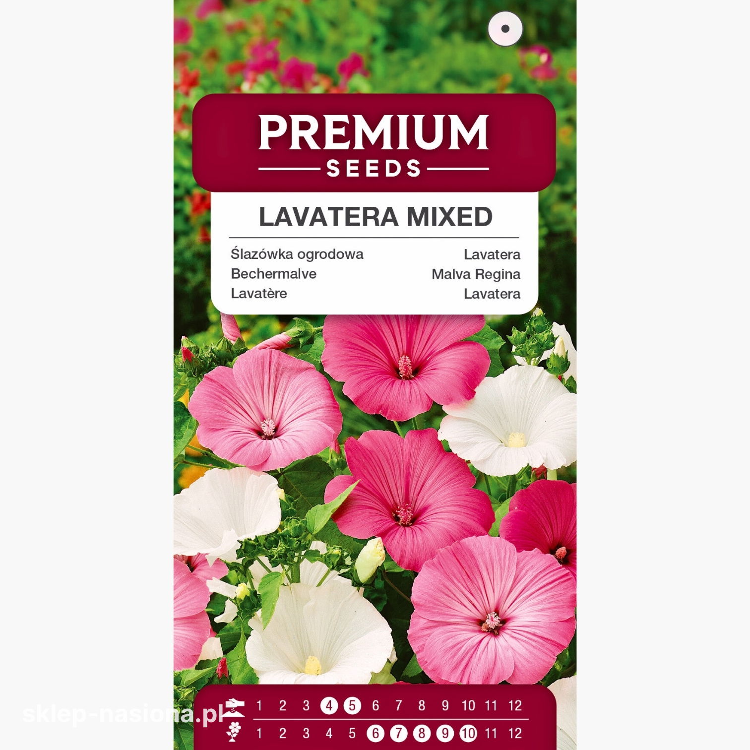 Kolor kwiatów: Dostępna w naszym sklepie mieszanka ślazówki wytwarza kwiaty w kolorze białym i różowym.