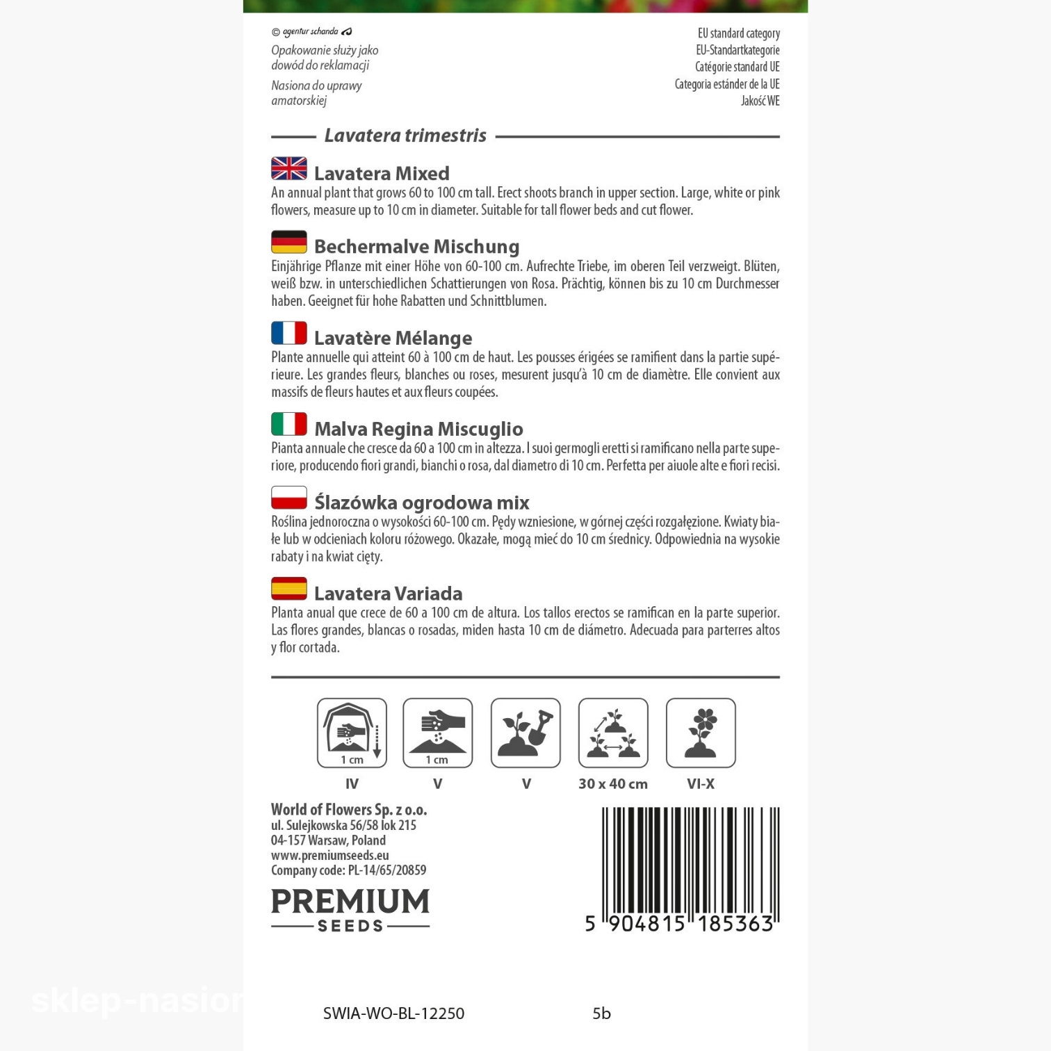 Opakowanie zawiera 0,6g nasion oraz informacje o terminie przydatności do siewu i ogólnych zasadach uprawy.