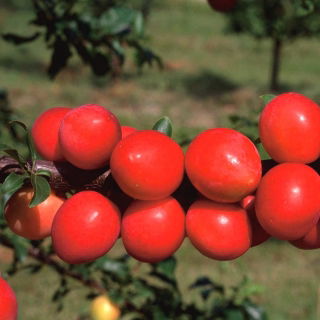 Owoce: Drobne owoce mają około 30 gramów wagi. Ich kształt najczęściej jest kulisty, ale mogą być także nieco wydłużone. Skórka ma żółty kolor, w okresie dojrzewania zaczyna przybierać ładną, czerwonobordową barwę, szczególnie od strony nasłonecznienia. Śliwki są bardzo smaczne, ich soczysty miąższ o żółtym kolorze wydziela bardzo przyjemny aromat.
