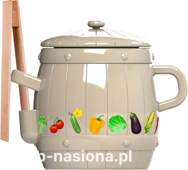 Stylizowany garnek ceramiczny ze szczypcami, który z wyglądu przypomina drewnianą beczkę będzie idealny na ogórki i kapustę. Doskonale posłuży Ci do kiszenia i przechowywania kapusty kiszonej oraz ogórków kiszonych. Efektowny pojemnik zapewnia właściwe warunki do przeprowadzenia procesu kiszenia, a przy tym prezentuje się bardzo dekoracyjnie.