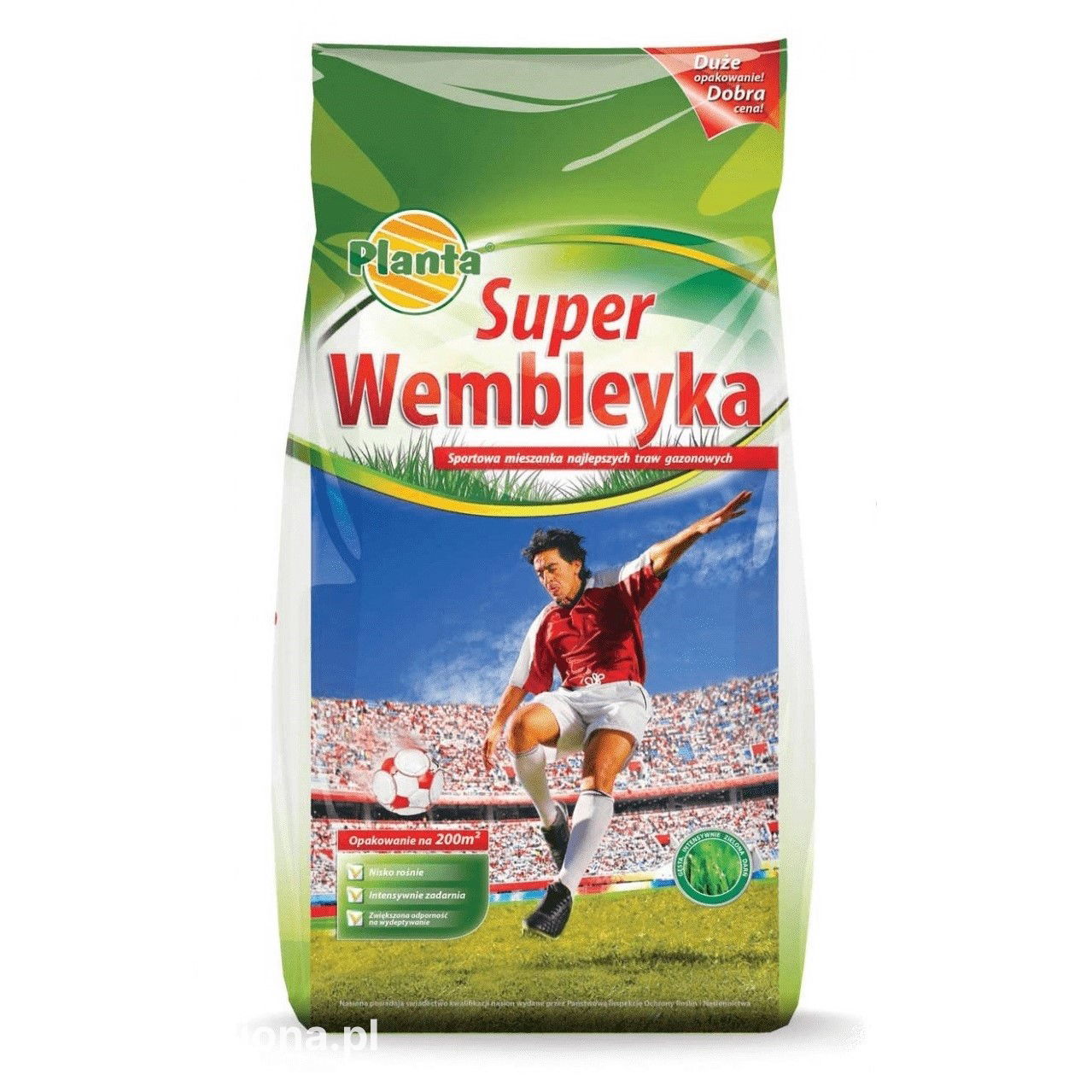 Zastosowanie: Super Wembleyka to niezawodna mieszanka na tereny o intensywnej eksploatacji. Dzięki niezaprzeczalnej, wysokiej tolerancji na deptanie, uszkodzenia, choroby i wymarzanie jest produktem polecanym na wiele terenów. Szybko regenerująca się i świetnie znosząca częste i niskie koszenie.