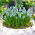 Zastosowanie: Szafirki najpiękniej prezentują się przy minimum 30 sztukach sadzonych koło siebie. Świetnie komponują się z innymi kwitnącymi wiosną roślinami zwłaszcza z żółtymi tulipanami lub pierwiosnkami. Nadają się na ogrodowe rabaty i obwódki, ale również do sadzenia w doniczkach.