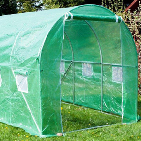 Materiał: szklarnia jest złożona z lekkiego, metalowego szkieletu, na który rozkłada się cienką warstwę transparentnej folii.