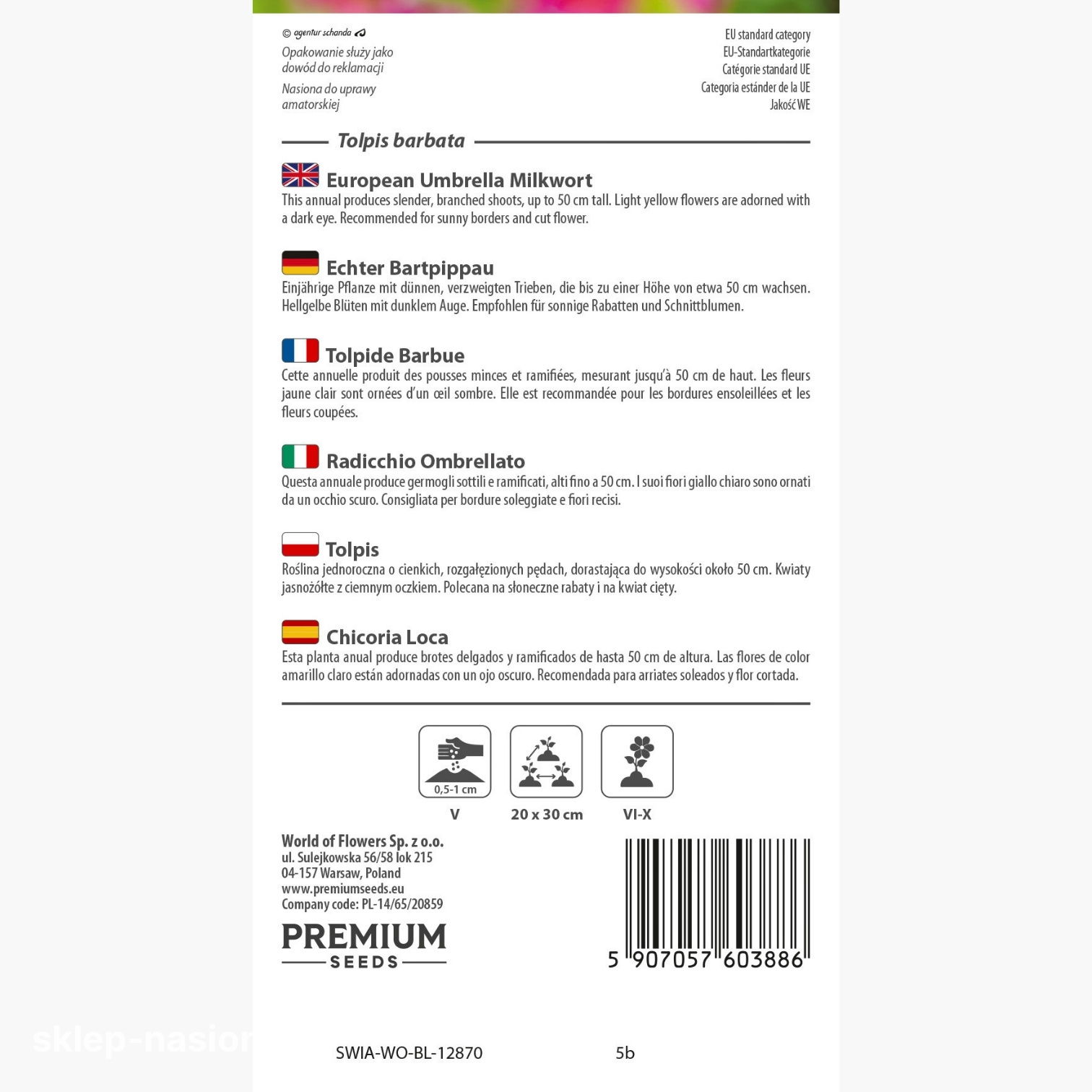 Dostępne w sprzedaży prowadzonej przez nasz sklep opakowanie zawiera 0,2g nasion oraz informacje o terminie przydatności do siewu i ogólnych zasadach uprawy.