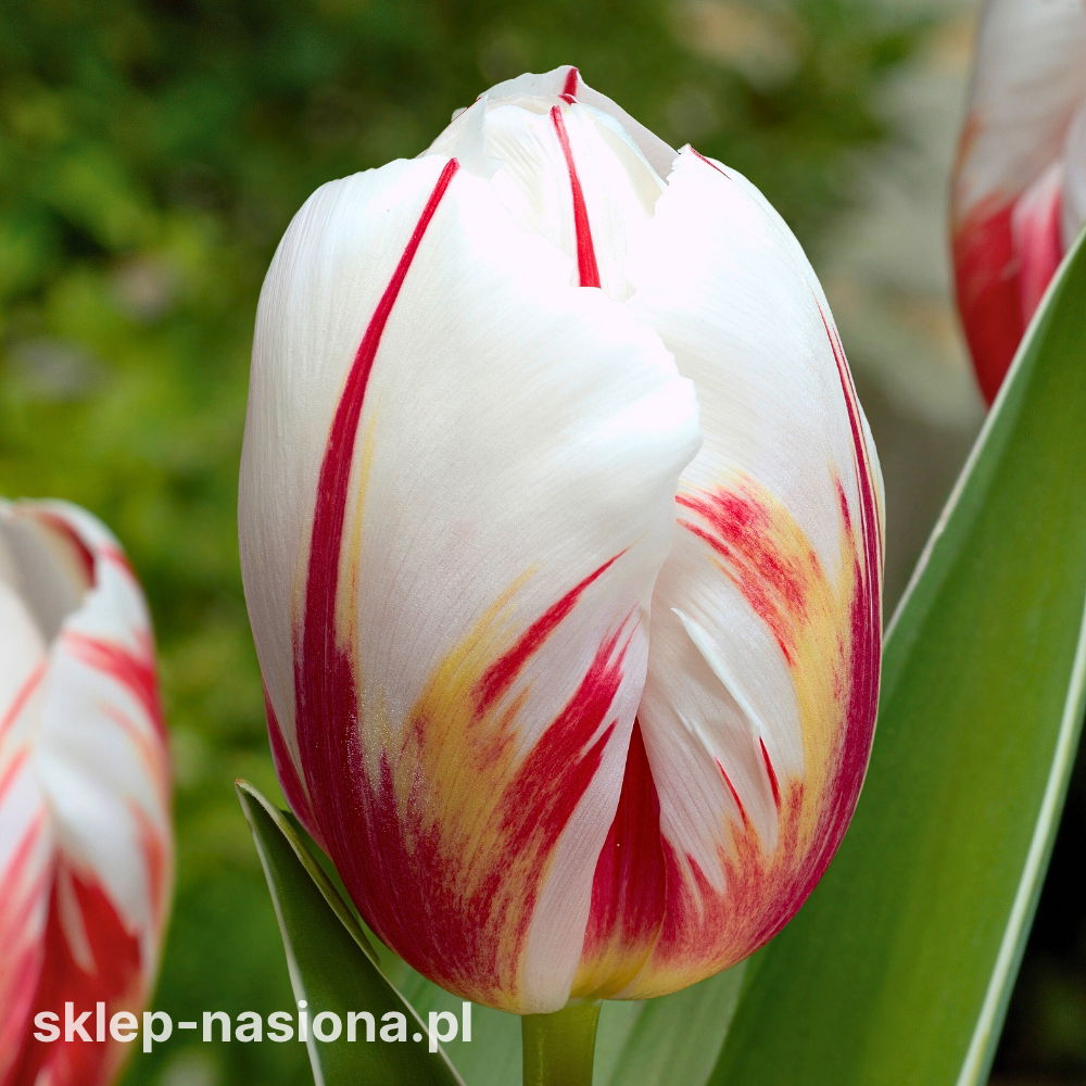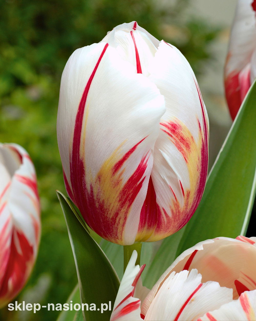 Rodzaj i kolor kwiatów: Kwiaty są białe, z jaskrawoczerwonymi smugami na płatkach. Żółta podstawa płatków płynnie rozchodzi się po powierzchni kwiatu, dodając tulipanowi uroku.