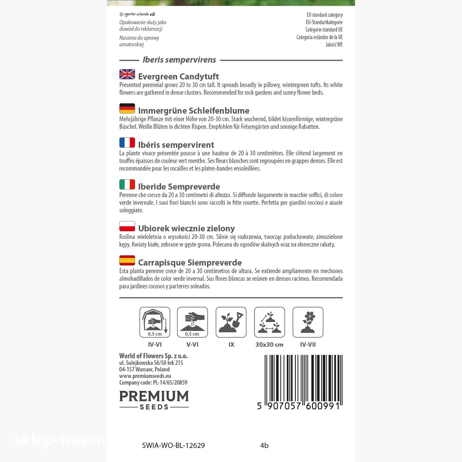 Zastosowanie: Oferowany w naszym sklepie ogrodniczym ubiorek wieczniezielony to świetna roślina do obsadzania skalniaków. Może być wykorzystywany również do dekoracji frontu rabat kwietnych. Świetnie prezentuje się w towarzystwie smagliczki skalnej, gęsiówki kaukaskiej, floksa skrzydlastego i żagwinu ogrodowego (razem tworzą tak zwaną bylinową skalną piątkę). Ze względu na ładne, wręcz śnieżnobiałe kwiatostany, warto uprawiać go także na kwiat cięty – dość długo utrzymuje świeżość w wazonie. Posiadacze balkonów i tarasów mogą go wysiewać w skrzynkach i donicach.