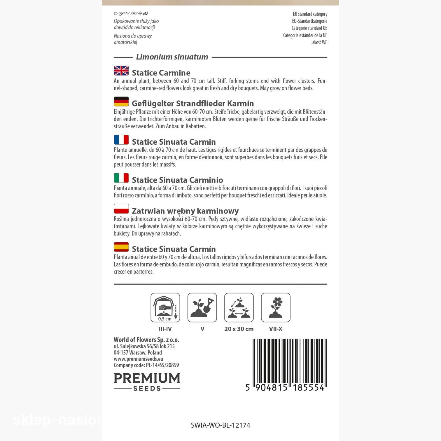 Opakowanie zawiera około 105 nasion. Wartość przybliżona +/-20%.